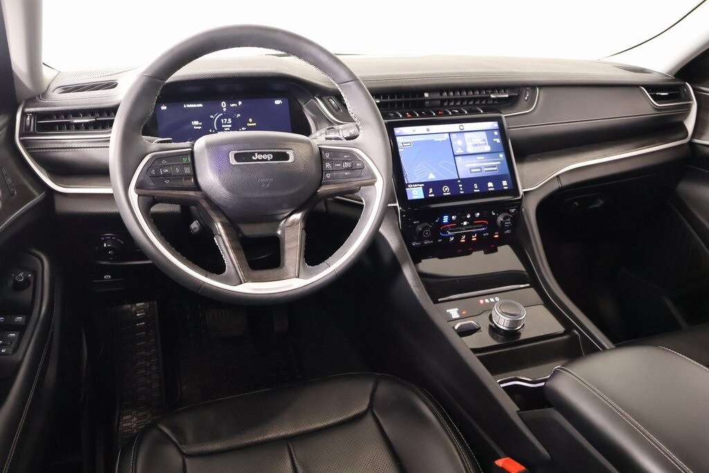 THIS VEHICLE COMES EQUIPPED WITH THE FOLLOWING OPTIONS AND FEATURES: Luxury Tech Group II (Memory Steering Column and Rain Sensitive Windshield Wipers), Quick Order Package 23E, Cooper Certified Certified, 3.45 Rear Axle Ratio, 3rd row seats: split-bench, 4-Wheel Disc Brakes, 6 Speakers, ABS brakes, Active Noise Control System, Air Conditioning, Alloy wheels, AM/FM radio: SiriusXM with 360L, Anti-whiplash front head restraints, Audio memory, Auto High-beam Headlights, Automatic temperature control, Brake assist, Bumpers: body-color, Capri Leatherette Seats, Compass, Delay-off headlights, Driver door bin, Driver vanity mirror, Dual front impact airbags, Dual front side impact airbags, Electronic Stability Control, Emergency communication system, Four wheel independent suspension, Front anti-roll bar, Front Bucket Seats, Front Center Armrest w/Storage, Front dual zone A/C, Front fog lights, Front License Plate Bracket, Front reading lights, Fully automatic headlights, Garage door transmitter, Heated door mirrors, Heated front seats, Heated rear seats, Heated steering wheel, Illuminated entry, Knee airbag, Low tire pressure warning, Manual Fold Seatbacks, Memory seat, Molded In Color Black/Gloss Black Roof Rails, MOPAR Rear Seat Entertainment (DISC), Navigation System, Normal Duty Suspension, Occupant sensing airbag, Outside temperature display, Overhead airbag, Overhead console, Panic alarm, ParkView Rear Back-Up Camera, Passenger door bin, Passenger vanity mirror, Power door mirrors, Power driver seat, Power Liftgate, Power passenger seat, Power steering, Power windows, Radio data system, Radio: Uconnect 5 Nav w/10.1" Display, Rear air conditioning, Rear anti-roll bar, Rear reading lights, Rear window defroster, Rear window wiper, Reclining 3rd row seat, Remote keyless entry, Security system, Speed control, Speed-Sensitive Wipers, Split folding rear seat, Spoiler, Steering wheel mounted audio controls, Tachometer, Telescoping steering wheel, Tilt steering wheel, Traction control, Trip computer, Turn signal indicator mirrors, Variably intermittent wipers, Voltmeter, Wheels: 18" x 8.0" Fully Painted Aluminum, and Wheels: 18" x 8.0" Polished/Painted Aluminum.