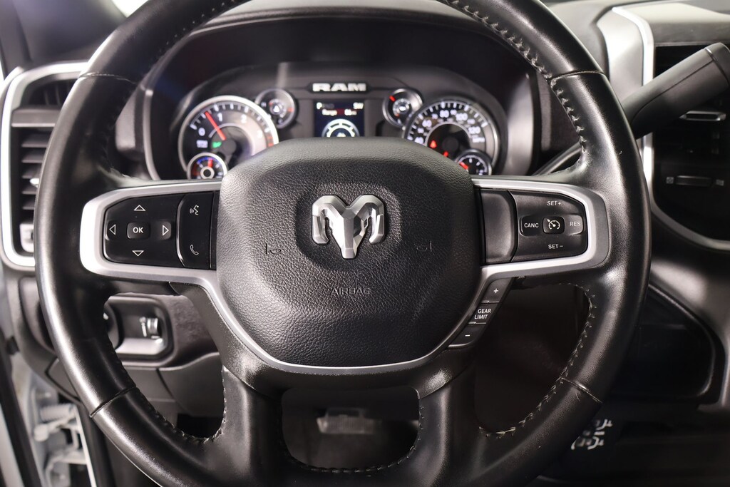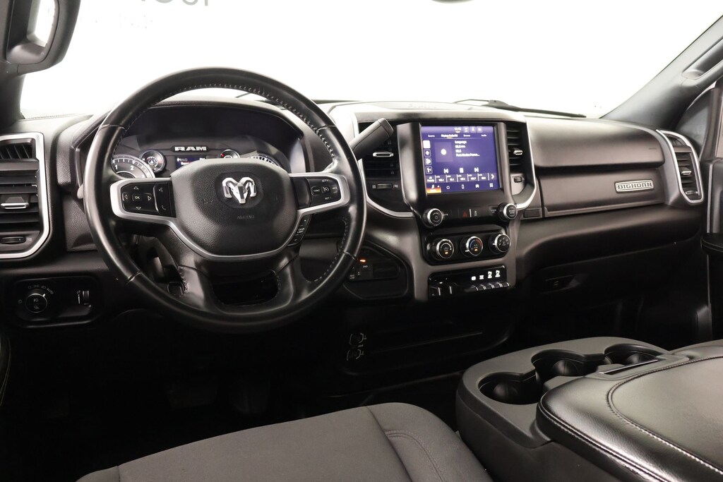 THIS VEHICLE COMES EQUIPPED WITH THE FOLLOWING OPTIONS AND FEATURES: Cold Weather Group (Engine Block Heater and MOPAR Winter Front Grille Cover), Heavy Duty Snow Plow Prep Group (220 Amp Alternator), Level 1 Equipment Group (2 Way Rear Headrest Seat, 2nd Row In Floor Storage Bins, 4 Way Front Headrests, 40/20/40 Split Bench Seat, 4G LTE Wi-Fi Hot Spot, 8.4" Touchscreen Display, Apple CarPlay, Auto Power-Folding Mirrors, Big Horn IP Badge, Black Exterior Mirrors, Bluetooth Handsfree Phone & Audio, Center Hub, Connectivity - US/Canada, Dual Glove Boxes, Exterior Mirrors Courtesy Lamps, Exterior Mirrors w/Heating Element, Exterior Mirrors w/Supplemental Signals, Foam Bottle Insert (Door Trim Panel), Footwell Courtesy Lamp, For Details, Visit DriveUconnect.com, For More Info, Call 800-643-2112, Forward & Reverse Utility Lights, Front Armrest w/Cupholders, Front Center Seat Cushion Storage, Front Fog Lamps, Front Seat Back Map Pockets, Global Telematics Box Module (TBM), Glove Box Lamp, Google Android Auto, GPS Antenna Input, Integrated Center Stack Radio, Integrated Voice Command w/Bluetooth, Leather Wrapped Steering Wheel, Locking Lower Glove Box, Manual Adjust 4-Way Front Passenger Seat, Mirror Running Lights, Power 2-Way Driver Lumbar Adjust, Power Adjust 8-Way Driver Seat, Power Adjust Mirrors, Power Adjustable Convex Aux Mirrors, Power Heated Fold Telescope Mirrors, Power Telescoping Mirrors, Rear 60/40 Folding Seat, Rear Dome w/On/Off Switch Lamp, Remote USB Port - Charge Only, Selectable Tire Fill Alert, SiriusXM Radio Service, SiriusXM Satellite Radio, Steering Wheel Mounted Audio Controls, Storage Tray, and Wheels: 18" x 8.0" Polished Aluminum), Quick Order Package 2HZ Big Horn, Cooper Certified Certified, 3.73 Axle Ratio, 4-Wheel Disc Brakes, 6 Speakers, ABS brakes, Active Noise Control System, Air Conditioning, Brake assist, Bumpers: chrome, Center Stack Storage Drawer, Chrome Flat Cab-Length Side Steps, Cloth 40/20/40 Bench Seat, Compass, Delay-off headlights, Driver door bin, Dual front impact airbags, Dual front side impact airbags, Electronic Stability Control, Electronically Controlled Throttle, Emergency communication system: SiriusXM Guardian, Front anti-roll bar, Front Center Armrest w/Storage, Front License Plate Bracket, Front reading lights, Fully automatic headlights, Heated door mirrors, Illuminated entry, Low tire pressure warning, Manual Adjust 4-Way Driver Seat, Manufacturer's Statement of Origin, MOPAR Front & Rear Rubber Floor Mats, MOPAR Spray In Bedliner, Occupant sensing airbag, Outside temperature display, Overhead airbag, Overhead console, Panic alarm, ParkSense Front/Rear Park Assist System, ParkView Rear Back-Up Camera, Passenger door bin, Passenger vanity mirror, Power door mirrors, Power steering, Power windows, Premium Cloth 40/20/40 Bench Seat (DISC), Radio data system, Radio: Uconnect 3 w/5" Display, Radio: Uconnect 5 W w/8.4" Display, Rear anti-roll bar, Rear Folding Seat, Rear seat center armrest, Rear step bumper, Rear Window Defroster, Remote keyless entry, Speed control, Tachometer, Tilt steering wheel, Tip Start, Tow Hooks, Traction control, Trip computer, Turn signal indicator mirrors, Variably intermittent wipers, Voltmeter, and Wheels: 18" x 8.0" Steel Chrome ClaD.