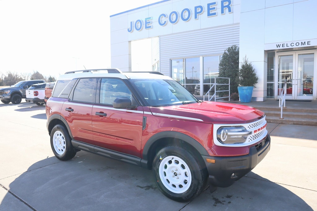 $6,904 off MSRP! Joe Cooper Ford of Edmond is delighted to offer 2025 Ford Bronco Sport Heritage in Ruby Red Metallic Tinted Clearcoat with Navy Pier Cloth. Well equipped with: Convenience Package (Heated 8-Way Power Driver's Seat, LED Fog Lamps, Premium Wrapped Steering Wheel, and Universal Garage Door Opener (UGDO)), Equipment Group 250A, 4-Wheel Disc Brakes, 6 Speakers, ABS brakes, Air Conditioning, Alloy wheels, AM/FM radio: SiriusXM, AM/FM Stereo, Auto High-beam Headlights, Automatic temperature control, Brake assist, Compass, Delay-off headlights, Driver door bin, Driver vanity mirror, Dual front impact airbags, Dual front side impact airbags, Electronic Stability Control, Emergency communication system: SYNC 4 911 Assist, Four wheel independent suspension, Front anti-roll bar, Front Bucket Seats, Front Center Armrest, Front License Plate Bracket, Front reading lights, Fully automatic headlights, Heated door mirrors, Illuminated entry, Knee airbag, Low tire pressure warning, Occupant sensing airbag, Outside temperature display, Overhead airbag, Overhead console, Panic alarm, Passenger door bin, Passenger vanity mirror, Plaid Cloth Front Bucket Seats, Power door mirrors, Power steering, Power windows, Radio data system, Rear anti-roll bar, Rear Parking Sensors, Rear reading lights, Rear seat center armrest, Rear window defroster, Rear window wiper, Remote keyless entry, Security system, SiriusXM, Speed control, Speed-sensing steering, Speed-Sensitive Wipers, Split folding rear seat, Steering wheel mounted audio controls, SYNC 4 w/Enhanced Voice Recognition, Tachometer, Telescoping steering wheel, Tilt steering wheel, Traction control, Trip computer, Variably intermittent wipers, and Wheels: 17" Oxford White-Painted Aluminum.