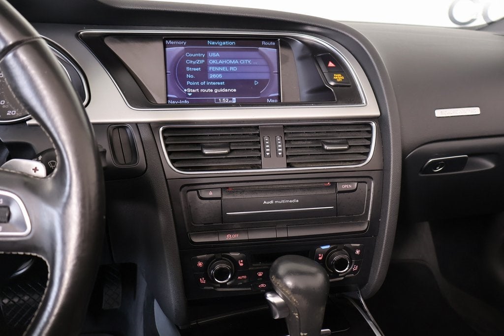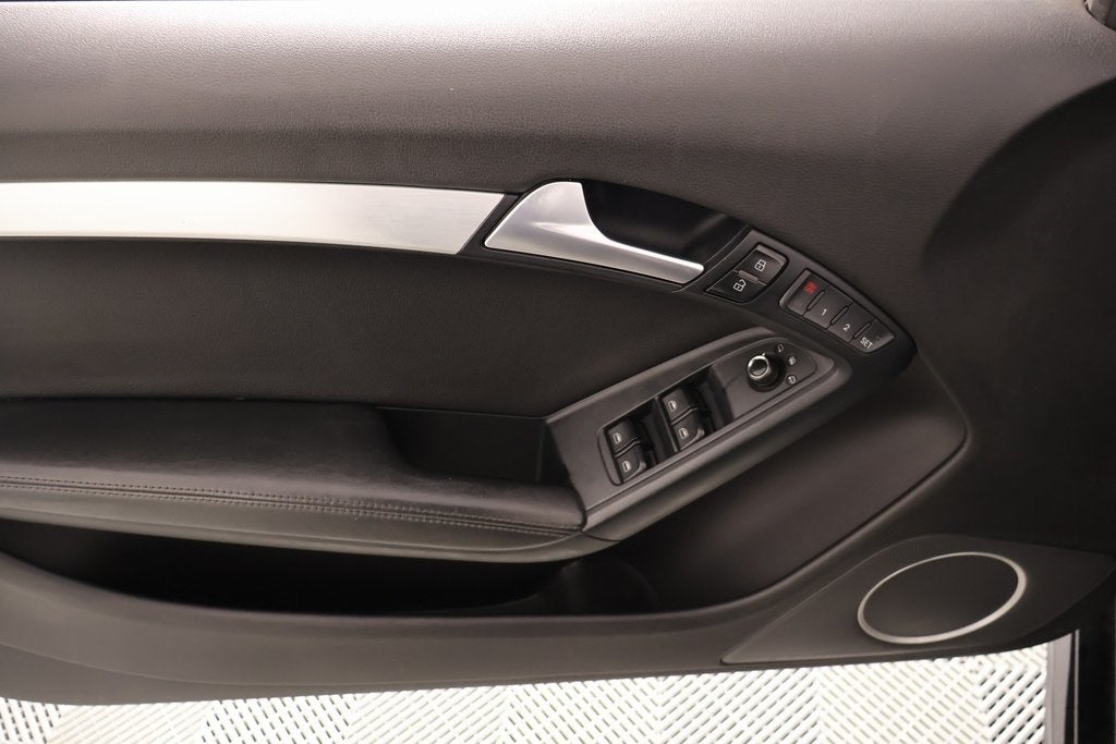 2012 Audi S5 6-Step Heated Front Seats, 8.5J x 19 5-Parallel Spoke Star-Design Wheels, ABS brakes, Alloy wheels, AM/FM radio: SIRIUS, Compass, Electronic Stability Control, Front dual zone A/C, Heated door mirrors, Heated front seats, Illuminated entry, Low tire pressure warning, Remote keyless entry, Silk Nappa Leather Seat Trim, Traction control, 4-Wheel Disc Brakes, 8 Speakers, Air Conditioning, Auto-dimming door mirrors, Auto-dimming Rear-View mirror, Automatic temperature control, Brake assist, Bumpers: body-color, CD player, Convertible roof lining, Convertible roof wind blocker, Delay-off headlights, Driver door bin, Driver vanity mirror, Dual front impact airbags, Dual front side impact airbags, Four wheel independent suspension, Front anti-roll bar, Front Bucket Seats, Front Center Armrest, Front fog lights, Front reading lights, Garage door transmitter: HomeLink, Glass rear window, Headlight cleaning, High intensity discharge headlights: Xenon plus, Integrated roll-over protection, Knee airbag, Leather Shift Knob, Leather steering wheel, Memory seat, Occupant sensing airbag, Outside temperature display, Panic alarm, Passenger door bin, Passenger vanity mirror, Power convertible roof, Power door mirrors, Power driver seat, Power passenger seat, Power steering, Power windows, Radio data system, Radio: Audi Premium 1CD Sound System, Rain sensing wipers, Rear air conditioning, Rear anti-roll bar, Rear fog lights, Rear reading lights, Rear window defroster, Security system, Speed control, Speed-sensing steering, Speed-Sensitive Wipers, Split folding rear seat, Sport steering wheel, Steering wheel mounted audio controls, Tachometer, Telescoping steering wheel, Tilt steering wheel, Trip computer, Turn signal indicator mirrors, and Variably intermittent wipers.