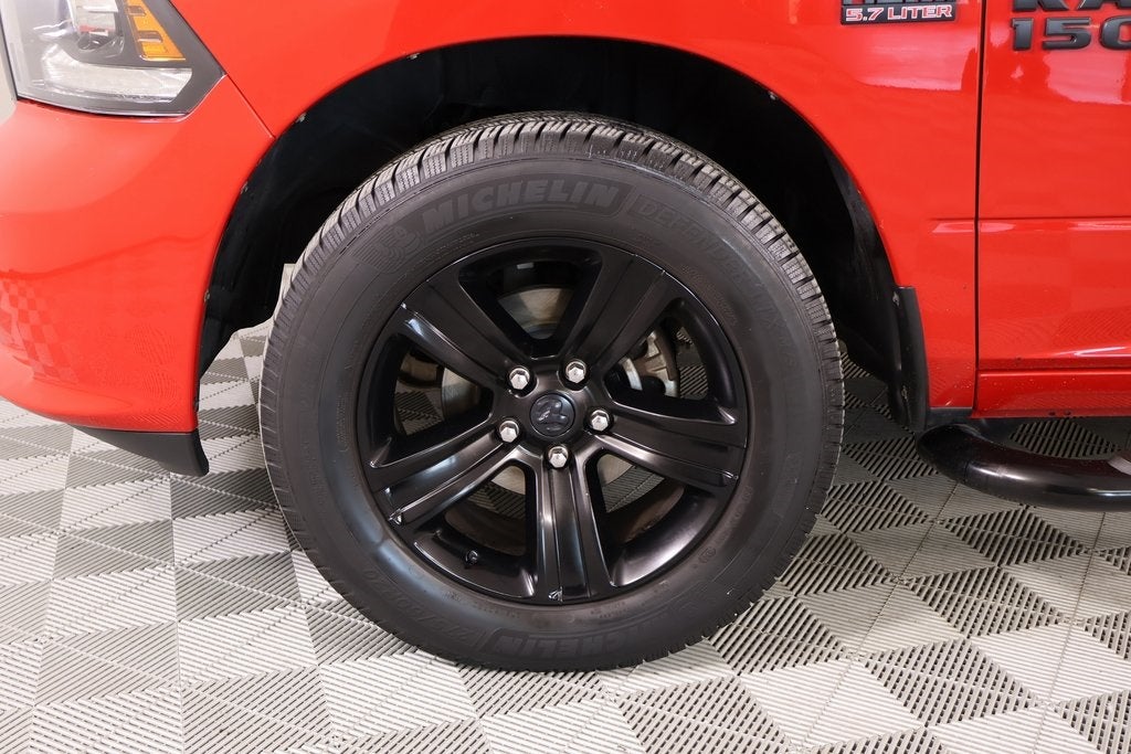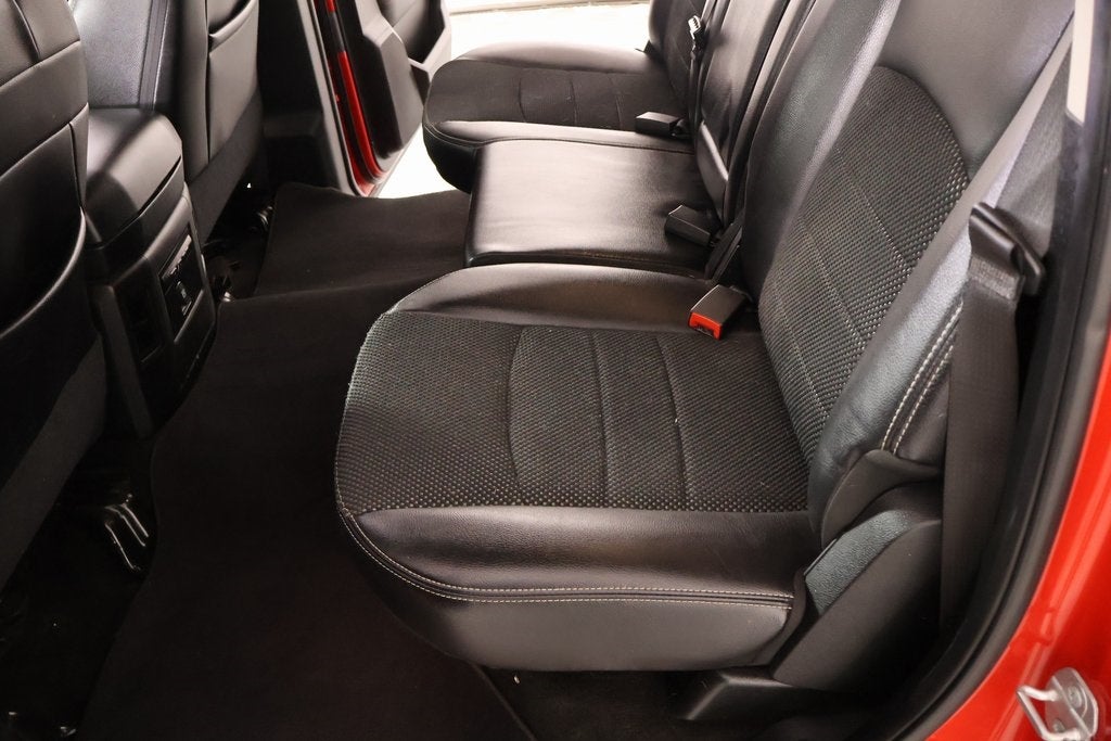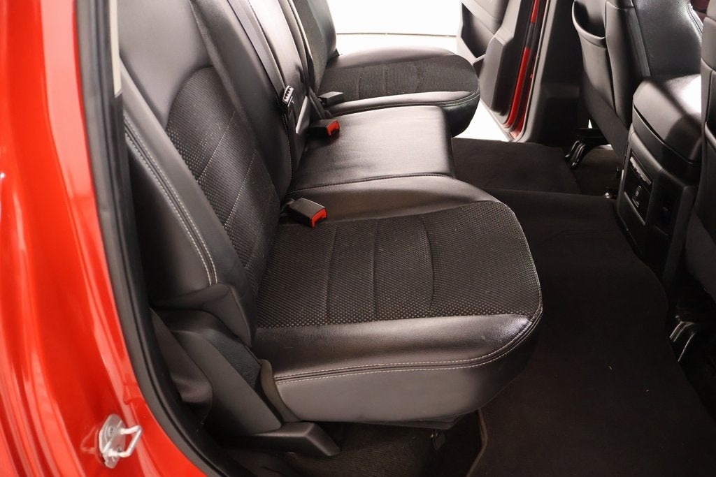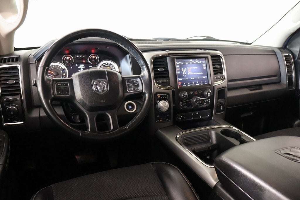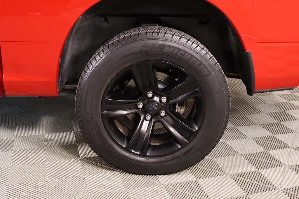 THIS VEHICLE COMES EQUIPPED WITH THE FOLLOWING OPTIONS AND FEATURES: Convenience Group (Rain Sensitive Windshield Wipers and Remote Proximity Keyless Entry), Quick Order Package 26Q Night (DISC) (4x4 Flat Black Badge, Center Hub, Flat Black 5.7L Hemi Badge, Ram 1500 Night Special Edition, and Wheels: 20" x 9" Semi-Gloss Black Aluminum), 1-Yr SiriusXM Guardian Trial, 115V Auxiliary Power Outlet, 20" x 9" Polished Aluminum Wheels, 3.21 Rear Axle Ratio, 3.92 Rear Axle Ratio, 4-Wheel Disc Brakes, 6 Speakers, 8.4" Touchscreen Display, ABS brakes, Active Grille Shutters, Adjustable pedals, Air Conditioning, Alloy wheels, AM/FM radio: SiriusXM, Anti-Spin Differential Rear Axle, Apple CarPlay, Apple CarPlay/Android Auto, Audio Jack Input for Mobile Devices, Auto-dimming door mirrors, Auto-dimming Rear-View mirror, Automatic temperature control, Brake assist, Bucket Seats, Bumpers: body-color, Class IV Receiver Hitch, Cloth Bucket Seats, Compass, Delay-off headlights, Driver door bin, Driver vanity mirror, Dual front impact airbags, Dual front side impact airbags, Electronic Shift, Electronic Stability Control, Emergency communication system: SiriusXM Guardian, Folding Flat Load Floor Storage, Front anti-roll bar, Front Bucket Seats, Front Center Armrest w/Storage, Front dual zone A/C, Front fog lights, Front reading lights, Front wheel independent suspension, Full Length Upgraded Floor Console, Fully automatic headlights, Garage door transmitter, Google Android Auto, GPS Antenna Input, HD Radio, Heated door mirrors, Heated Front Seats, Heated front seats, Heated steering wheel, High Back Seats, Illuminated entry, Integrated Voice Command w/Bluetooth®, Leather steering wheel, Low tire pressure warning, Media Hub (2 USB, AUX), Occupant sensing airbag, Outside temperature display, Overhead airbag, Overhead console, Panic alarm, ParkView Rear Back-Up Camera, Passenger door bin, Passenger vanity mirror, Power door mirrors, Power driver seat, Power Lumbar Adjust, Power steering, Power windows, Radio data system, Radio: Uconnect 4C Nav w/8.4" Display, Radio: Uconnect 4C w/8.4" Display, Rear 60/40 Split Folding Seat, Rear anti-roll bar, Rear seat center armrest, Rear step bumper, Remote keyless entry, Remote USB Port, SiriusXM Satellite Radio, Speed control, Split folding rear seat, Steering wheel mounted audio controls, Tachometer, Tilt steering wheel, Tip Start, Traction control, Trip computer, Turn signal indicator mirrors, USB Host Flip, Variably intermittent wipers, and Voltmeter.