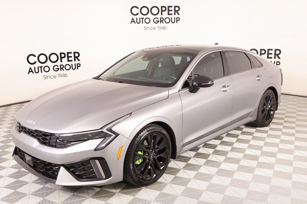 ** Bluetooth® **, ** BACKUP CAMERA **, ** NAVIGATION SYSTEM **, ** LEATHER SEATS **, ** MOONROOF/SUNROOF **, ** HEATED/COOLED SEATS **, ** ADAPTIVE CRUISE CONTROL **, ** LANE DEPARTURE WARNING **, ** AUTOMATIC TRANSMISSION **, ** HEATED SEATS **, ** HEATED STEERING WHEEL **, ** PARKING SENSORS **, ** BLIND SPOT MONITOR **, ** POWER SEATS **, ** KEYLESS ENTRY **, ** HI-FI SOUND SYSTEM**, ** LED HEADLIGHTS **, ** APPLE CAR PLAY **, ** 360 CAMERA SYSTEM **, ** BOSE AUDIO SYSTEM **, ** ONE OWNER **, ** ACCIDENT FREE ON CARFAX **, ** LOCAL TRADE **, K5 GT, 4D Sedan, 2.5L I4 DGI Turbocharged DOHC 16V LEV3-ULEV70 290hp, 8-Speed DCT, FWD, Steel Matte Gray, Black w/SynTex Seat Trim, 12.3 Instrument Display, 2-Position Memory Driver's Seat & Outside Mirrors, Active Sound Design, Alloy wheels, Auto Up/Down Front Passenger & Rear Windows, Blind-Spot View Monitor, Bose Premium Audio, GT1 Package, Heated Steering Wheel, Parking Collision Avoidance-Assist - Reverse, Parking Distance Warning - Side, Power Folding Mirrors, Power Front Passenger Seat, Smartphone Digital Key, Surround View Monitor, Ventilated Front Seats, Wheels: 19 x 8.0J Gloss Black Custom Alloy. THIS VEHICLE COMES EQUIPPED WITH THE FOLLOWING OPTIONS AND FEATURES: GT1 Package (12.3 Instrument Display, 2-Position Memory Driver's Seat & Outside Mirrors, Active Sound Design, Auto Up/Down Front Passenger & Rear Windows, Blind-Spot View Monitor, Bose Premium Audio, Heated Steering Wheel, Parking Collision Avoidance-Assist - Reverse, Parking Distance Warning - Side, Power Folding Mirrors, Power Front Passenger Seat, Smartphone Digital Key, Surround View Monitor, Ventilated Front Seats, and Wheels: 19 x 8.0J Gloss Black Custom Alloy), K5 GT, 4D Sedan, 2.5L I4 DGI Turbocharged DOHC 16V LEV3-ULEV70 290hp, 8-Speed DCT, FWD, Steel Matte Gray, Black w/SynTex Seat Trim, Alloy wheels, 4-Wheel Disc Brakes, 6 Speakers, ABS brakes, Air Conditioning, AM/FM radio: SiriusXM, Auto High-beam Headlights, Automatic temperature control, Brake assist, Bumpers: body-color, Carpeted Floor Mats, Delay-off headlights, Driver door bin, Driver vanity mirror, Dual front impact airbags, Dual front side impact airbags, Electronic Stability Control, Emergency communication system: Kia Connect (includes 1 year free trial), Four wheel independent suspension, Front anti-roll bar, Front Bucket Seats, Front Center Armrest, Front dual zone A/C, Front fog lights, Front reading lights, Fully automatic headlights, Heated door mirrors, Heated front seats, Heated Sport Bucket Seats, Illuminated entry, Knee airbag, Leather Shift Knob, Leather steering wheel, Low tire pressure warning, Mud Guards, Navigation System, Occupant sensing airbag, Outside temperature display, Overhead airbag, Overhead console, Panic alarm, Passenger door bin, Passenger vanity mirror, Power door mirrors, Power driver seat, Power moonroof, Power steering, Power windows, Radio data system, Radio: AM/FM Audio System, Rear anti-roll bar, Rear reading lights, Rear seat center armrest, Rear side impact airbag, Rear window defroster, Remote keyless entry, Security system, Speed control, Speed-sensing steering, Split folding rear seat, Sport steering wheel, Steering wheel mounted audio controls, SynTex Seat Trim, Tachometer, Telescoping steering wheel, Tilt steering wheel, Traction control, Trip computer, Turn signal indicator mirrors, and Variably intermittent wipers.