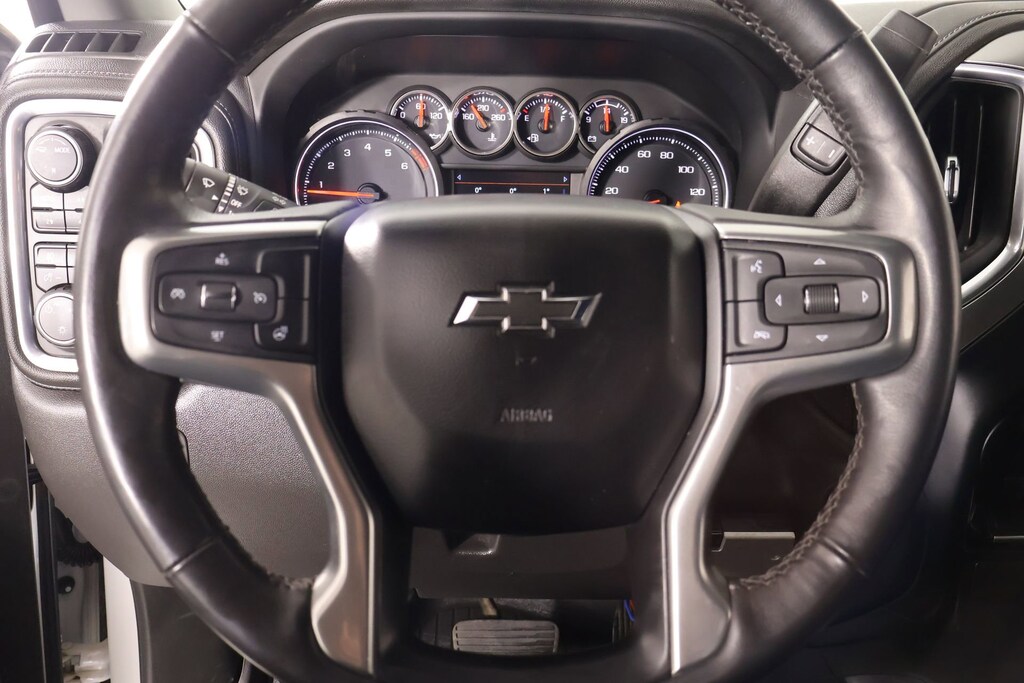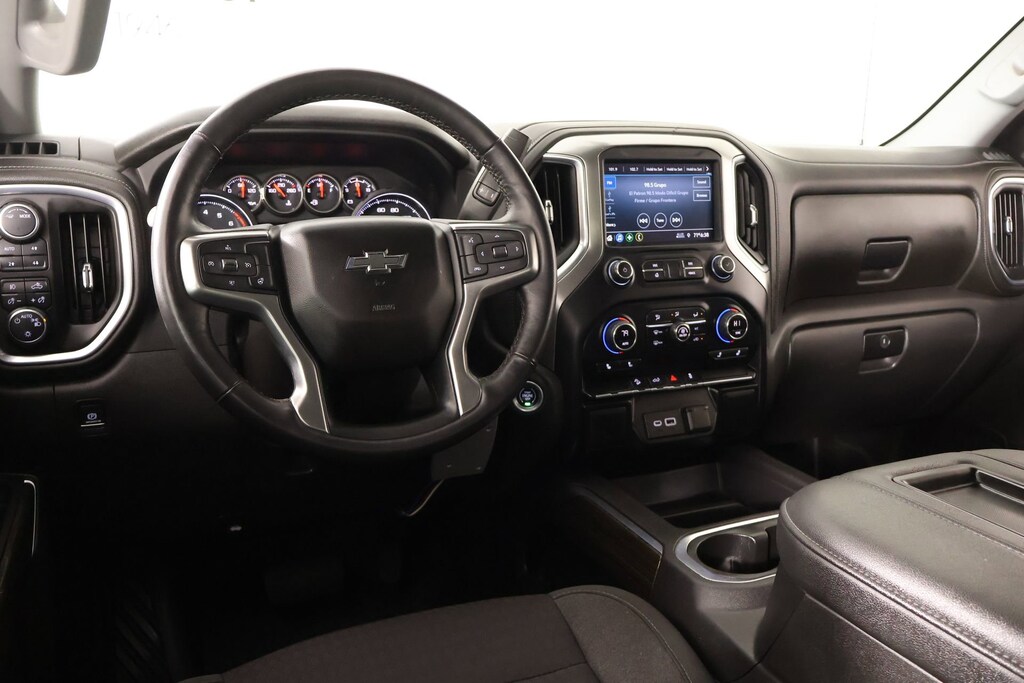 The Silverado's exterior is dressed to impress, with a high-gloss black grille, mirror caps, and 20-inch aluminum wheels that exude a bold, rugged style. The LED reflector headlamps and fog lamps ensure you'll have excellent visibility, no matter the conditions.