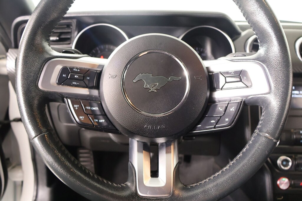 Clean Carfax, One Owner, Bluetooth, Apple CarPlay, Android Auto, Back Up Camera, Mustang EcoBoost, 2D Coupe, 2.3L I4 Turbocharged EcoBoost, 10-Speed Automatic, RWD, Oxford White, Ebony Cloth, 4-Wheel Disc Brakes, 6 Speakers, ABS brakes, Air Conditioning, Alloy wheels, AM/FM radio, AM/FM Stereo, Auto-dimming Rear-View mirror, Brake assist, Bumpers: body-color, Compass, Delay-off headlights, Driver door bin, Driver vanity mirror, Dual front impact airbags, Dual front side impact airbags, Electronic Stability Control, Emergency communication system: 911 Assist, Equipment Group 100A, Exterior Parking Camera Rear, Four wheel independent suspension, Front anti-roll bar, Front Bucket Seats, Front Center Armrest, Front reading lights, Fully automatic headlights, Illuminated entry, Knee airbag, Leather Shift Knob, Low tire pressure warning, Occupant sensing airbag, Outside temperature display, Overhead airbag, Overhead console, Panic alarm, Passenger door bin, Passenger vanity mirror, Power door mirrors, Power steering, Power windows, Radio data system, Rear anti-roll bar, Rear window defroster, Remote keyless entry, Security system, SiriusXM Radio, Speed control, Speed-sensing steering, Speed-Sensitive Wipers, Split folding rear seat, Steering wheel mounted audio controls, SYNC 3 Communications & Entertainment System, SYNC Communications & Entertainment System, Tachometer, Telescoping steering wheel, Tilt steering wheel, Traction control, Trip computer, Variably intermittent wipers, Voltmeter, Wheels: 17" Sparkle Silver-Painted Aluminum, Wheels: 18" x 8" Machined-Face Aluminum.