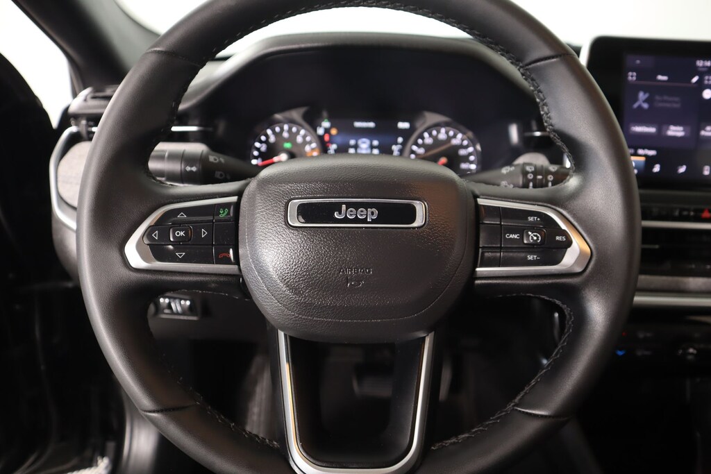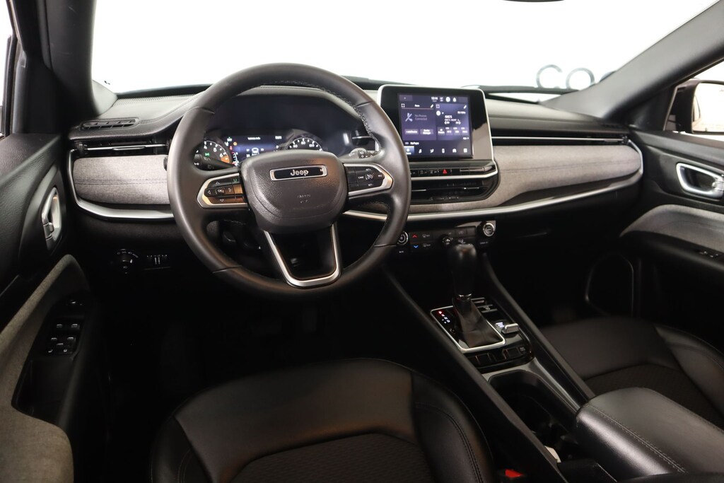 THIS VEHICLE COMES EQUIPPED WITH THE FOLLOWING OPTIONS AND FEATURES: Quick Order Package 29J, Compass Latitude, 4D Sport Utility, 2.0L I4 DOHC, 8-Speed Automatic, 4WD, Diamond Black Crystal Pearlcoat, Black Cloth, 3.73 Final Drive Ratio, 4-Wheel Disc Brakes, 6 Speakers, ABS brakes, Air Conditioning, Alloy wheels, AM/FM radio: SiriusXM, Apple CarPlay/Android Auto, Auto High-beam Headlights, Brake assist, Bumpers: body-color, Compass, Delay-off headlights, Driver door bin, Driver vanity mirror, Dual front impact airbags, Dual front side impact airbags, Electronic Stability Control, Emergency communication system: Jeep Connect, Four wheel independent suspension, Front anti-roll bar, Front Bucket Seats, Front Center Armrest w/Storage, Front fog lights, Front reading lights, Fully automatic headlights, Heated door mirrors, Heated front seats, Heated steering wheel, Illuminated entry, Knee airbag, Leather Shift Knob, Leather steering wheel, Low tire pressure warning, Occupant sensing airbag, Outside temperature display, Overhead airbag, Overhead console, Panic alarm, ParkView Rear Back-Up Camera, Passenger door bin, Passenger vanity mirror, Power door mirrors, Power steering, Power windows, Premium audio system: UConnect 5, Premium Cloth/Vinyl Bucket Seats, Radio: Uconnect 5 w/8.4" Display, Rear anti-roll bar, Rear seat center armrest, Rear window defroster, Rear window wiper, Remote keyless entry, Security system, Speed control, Split folding rear seat, Spoiler, Steering wheel mounted audio controls, Tachometer, Telescoping steering wheel, Tilt steering wheel, Traction control, Trip computer, Variably intermittent wipers, and Wheels: 17" x 7" Aluminum (DISC)