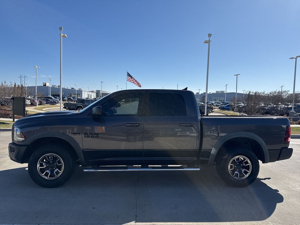 2016 Ram 1500 Quick Order Package 26W Rebel (Dual Rear Exhaust w/Bright Tips, Flat Black 5.7L Hemi Badge, Flat Black Ram 1500 Badge, and Ram Glove Box Badge), 6 Month Trial (Reg. Required), 6 Month Trial (Registration Required), 8.4" Touchscreen Display, Air Conditioning ATC w/Dual Zone Control, For Details Visit DriveUconnect.com, GPS Antenna Input, Integrated Voice Command w/Bluetooth, Media Hub (SD, USB, AUX), Nav-Capable! See Dealer for Details, Radio: Uconnect 8.4, Remote keyless entry, Remote SD Card Slot, SIRIUSXM Satellite Radio, Uconnect Access, 3.92 Rear Axle Ratio, 32 Gallon Fuel Tank, 4-Wheel Disc Brakes, 6 Speakers, ABS brakes, Air Conditioning, Alloy wheels, AM/FM radio, Anti-Spin Differential Rear Axle, Auto-leveling suspension, Brake assist, Compass, Delay-off headlights, Driver door bin, Dual front impact airbags, Dual front side impact airbags, Electronic Shift, Electronic Stability Control, Front anti-roll bar, Front Bucket Seats, Front Center Armrest w/Storage, Front fog lights, Front reading lights, Front wheel independent suspension, Fully automatic headlights, Heated door mirrors, Heated front seats, Heated steering wheel, Illuminated entry, Leather steering wheel, Low tire pressure warning, Occupant sensing airbag, Outside temperature display, Overhead airbag, Overhead console, Panic alarm, Passenger door bin, Passenger vanity mirror, Power door mirrors, Power driver seat, Power passenger seat, Power steering, Power windows, Premium Cloth Seats w/Emboss Tread Pattern, Radio data system, Radio: Uconnect 5.0, Rear anti-roll bar, Rear seat center armrest, Rear step bumper, Speed control, Split folding rear seat, Steering wheel mounted audio controls, Tachometer, Tilt steering wheel, Tip Start, Traction control, Trip computer, Variably intermittent wipers, Voltmeter, and Wheels: 17" x 8" Aluminum w/Matte Black Pocket.