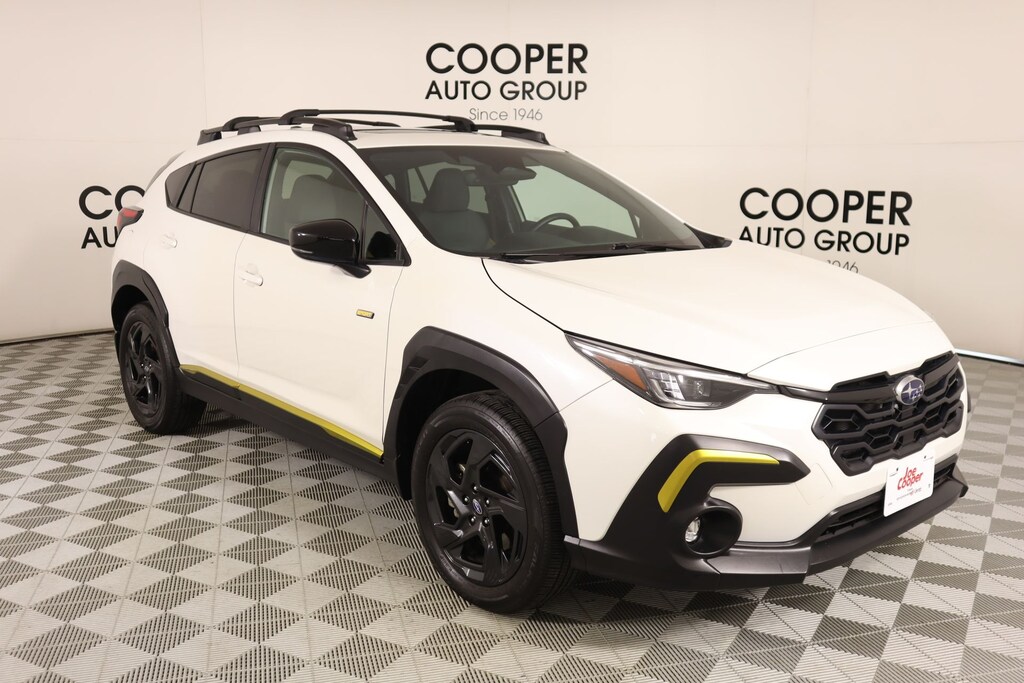 Joe Cooper Chrysler Dodge Jeep Ram of Yukon **405-265-1400** Crystal White Pearl 2024 Subaru Crosstrek Sport AWD 2.5L 4-Cylinder DOHC 16V THIS VEHICLE COMES EQUIPPED WITH THE FOLLOWING OPTIONS AND FEATURES: BSD/RCTA & Power Driver Seat & Power Moonroof (10-Way Power Driver's Seat, Blind Spot Detection w/Rear Cross-Traffic Alert, and Power Moonroof), Popular Package #4A (All-Weather Floor Liners, Auto-Dimming Exterior Mirror w/Approach Light, Auto-Dimming Mirror w/Compass & HomeLink, Rear Bumper Cover, and Splash Guards), Cooper Certified Certified, 3.70 Axle Ratio, 4-Wheel Disc Brakes, 6 Speakers, ABS brakes, Aero Crossbar Set, Air Conditioning, Alloy wheels, AM/FM radio: SiriusXM, Anti-whiplash front head restraints, Auto High-beam Headlights, Automatic temperature control, Brake assist, Bumpers: body-color, Driver door bin, Driver vanity mirror, Dual front impact airbags, Dual front side impact airbags, Electronic Stability Control, Emergency communication system: STARLINK Safety and Security (Subscription Required), Exterior Parking Camera Rear, Four wheel independent suspension, Front anti-roll bar, Front Bucket Seats, Front Center Armrest, Front dual zone A/C, Front fog lights, Front reading lights, Fully automatic headlights, Heated door mirrors, Heated Front Bucket Seats, Heated front seats, Illuminated entry, Knee airbag, Leather Shift Knob, Low tire pressure warning, Occupant sensing airbag, Outside temperature display, Overhead airbag, Overhead console, Panic alarm, Passenger door bin, Passenger vanity mirror, Power door mirrors, Power steering, Power windows, Radio data system, Radio: Subaru STARLINK 11.6" Multimedia Plus Sys, Rear anti-roll bar, Rear seat center armrest, Rear window defroster, Rear window wiper, Remote keyless entry, Security system, Speed control, Speed-sensing steering, Split folding rear seat, Spoiler, Sport Cloth Upholstery, STARLINK/Apple CarPlay/Android Auto, Steering wheel mounted audio controls, Sunshade - Windshield, Tachometer, Telescoping steering wheel, Tilt steering wheel, Traction control, Trip computer, Turn signal indicator mirrors, Variably intermittent wipers, and Wheels: 18" x 7.0J Dark Gray Aluminum Alloy. Recent Arrival! Cooper Certified, NO ACCIDENT HISTORY ON CARFAX!!!!, REAR VIEW CAMERA, SUNROOF/MOONROOF, KEYLESS ENTRY, BLUETOOTH HANDS FREE, APPLE CARPLAY, 10-Way Power Driver's Seat, 3.70 Axle Ratio, 4-Wheel Disc Brakes, 6 Speakers, ABS brakes, Aero Crossbar Set, Air Conditioning, All-Weather Floor Liners, Alloy wheels, AM/FM radio: SiriusXM, Anti-whiplash front head restraints, Auto High-beam Headlights, Auto-Dimming Exterior Mirror w/Approach Light, Auto-Dimming Mirror w/Compass & HomeLink, Automatic temperature control, Blind Spot Detection w/Rear Cross-Traffic Alert, Brake assist, BSD/RCTA & Power Driver Seat & Power Moonroof, Bumpers: body-color, Driver door bin, Driver vanity mirror, Dual front impact airbags, Dual front side impact airbags, Electronic Stability Control, Emergency communication system: STARLINK Safety and Security (Subscription Required), Exterior Parking Camera Rear, Four wheel independent suspension, Front anti-roll bar, Front Bucket Seats, Front Center Armrest, Front dual zone A/C, Front fog lights, Front reading lights, Fully automatic headlights, Heated door mirrors, Heated Front Bucket Seats, Heated front seats, Illuminated entry, Knee airbag, Leather Shift Knob, Low tire pressure warning, Occupant sensing airbag, Outside temperature display, Overhead airbag, Overhead console, Panic alarm, Passenger door bin, Passenger vanity mirror, Popular Package #4A, Power door mirrors, Power Moonroof, Power steering, Power windows, Radio data system, Radio: Subaru STARLINK 11.6" Multimedia Plus Sys, Rear anti-roll bar, Rear Bumper Cover, Rear seat center armrest, Rear window defroster, Rear window wiper, Remote keyless entry, Security system, Speed control, Speed-sensing steering, Splash Guards, Split folding rear seat, Spoiler, Sport Cloth Upholstery, STARL